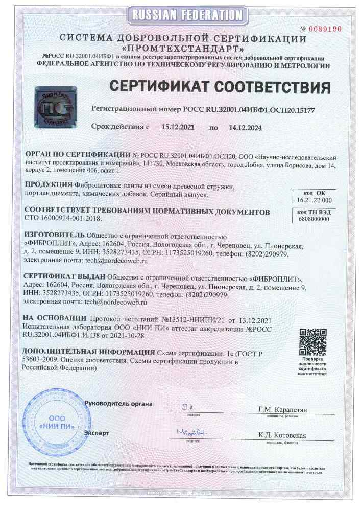 Фибролитовая плита Nordeco ФП 570-25С 1200х600х25 повышенной плотности на сером цементе
